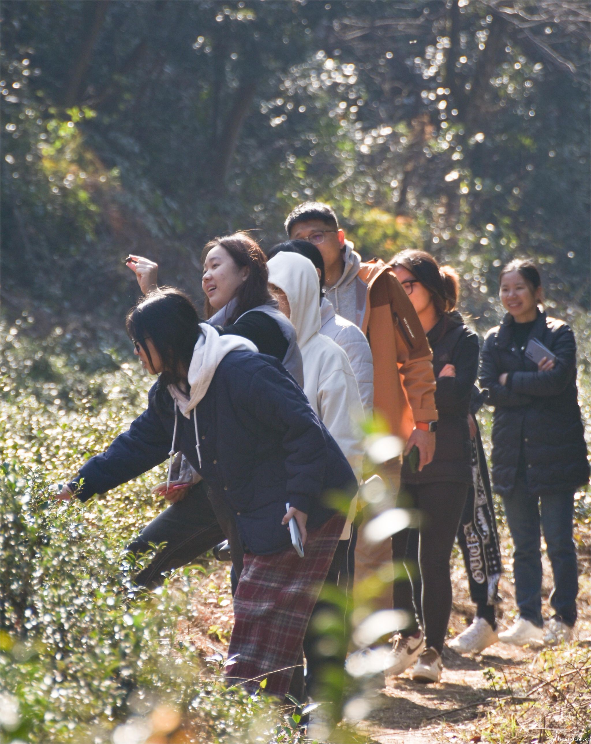 为了拿到第一手数据,实践团队走进九连山脉,探访同湖月茶叶生产基地,沉浸式感受茶叶生长环境。同湖月茶叶基地位于九连山脉腹地,海拔800多米的山上,方圆数十里为无人居住的林区,常年云雾缭绕,日照充足,形成适宜上佳茶树生长的独特高山垂直气候。